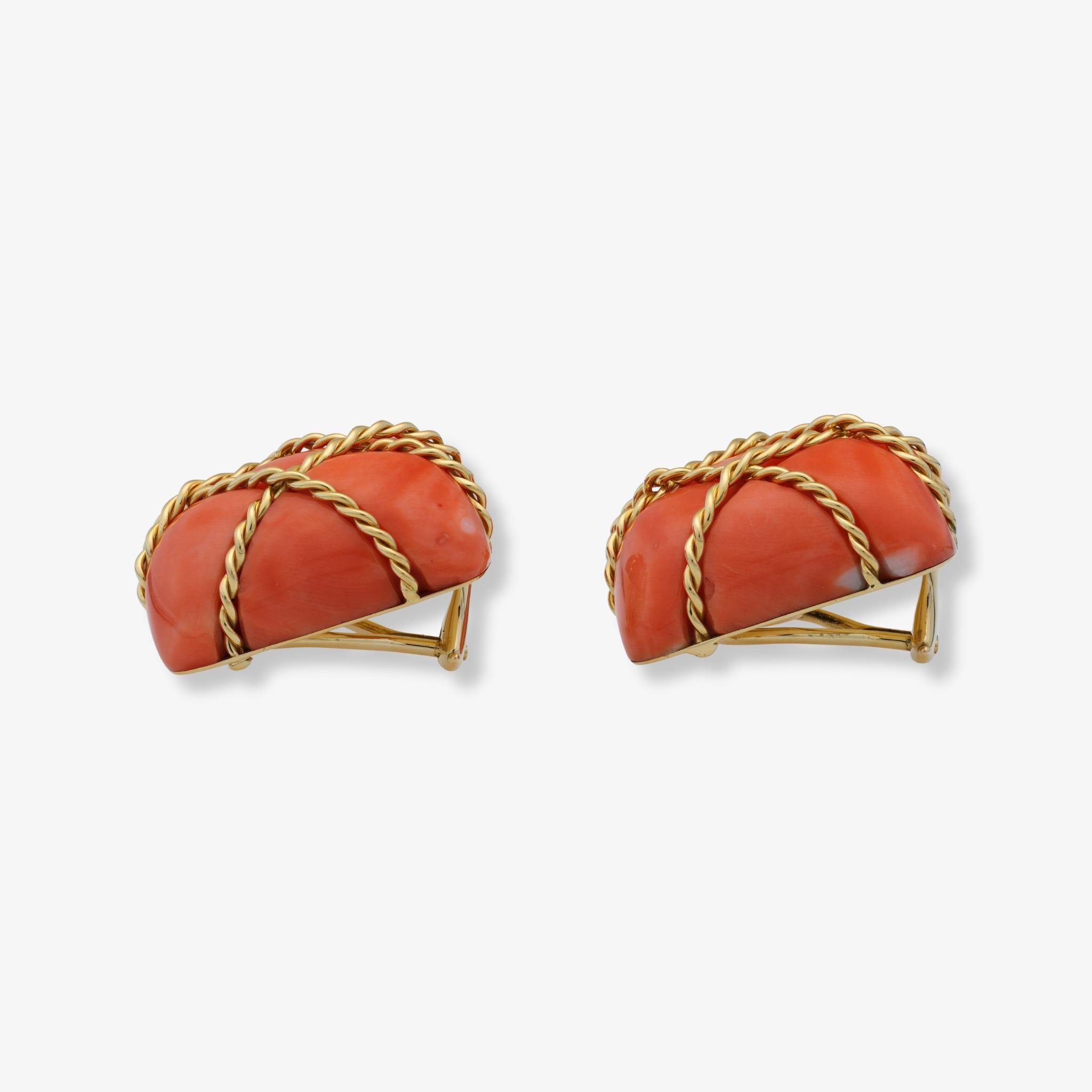 Seaman Schepps Monumental Coral and 18 Karat Yellow Gold Earrings