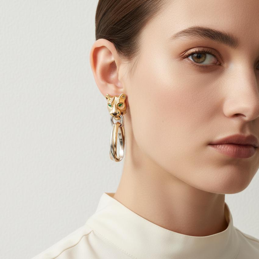 Cartier Panthere Trinity Day & Night Door Knocker Earrings in 18 Karat Gold