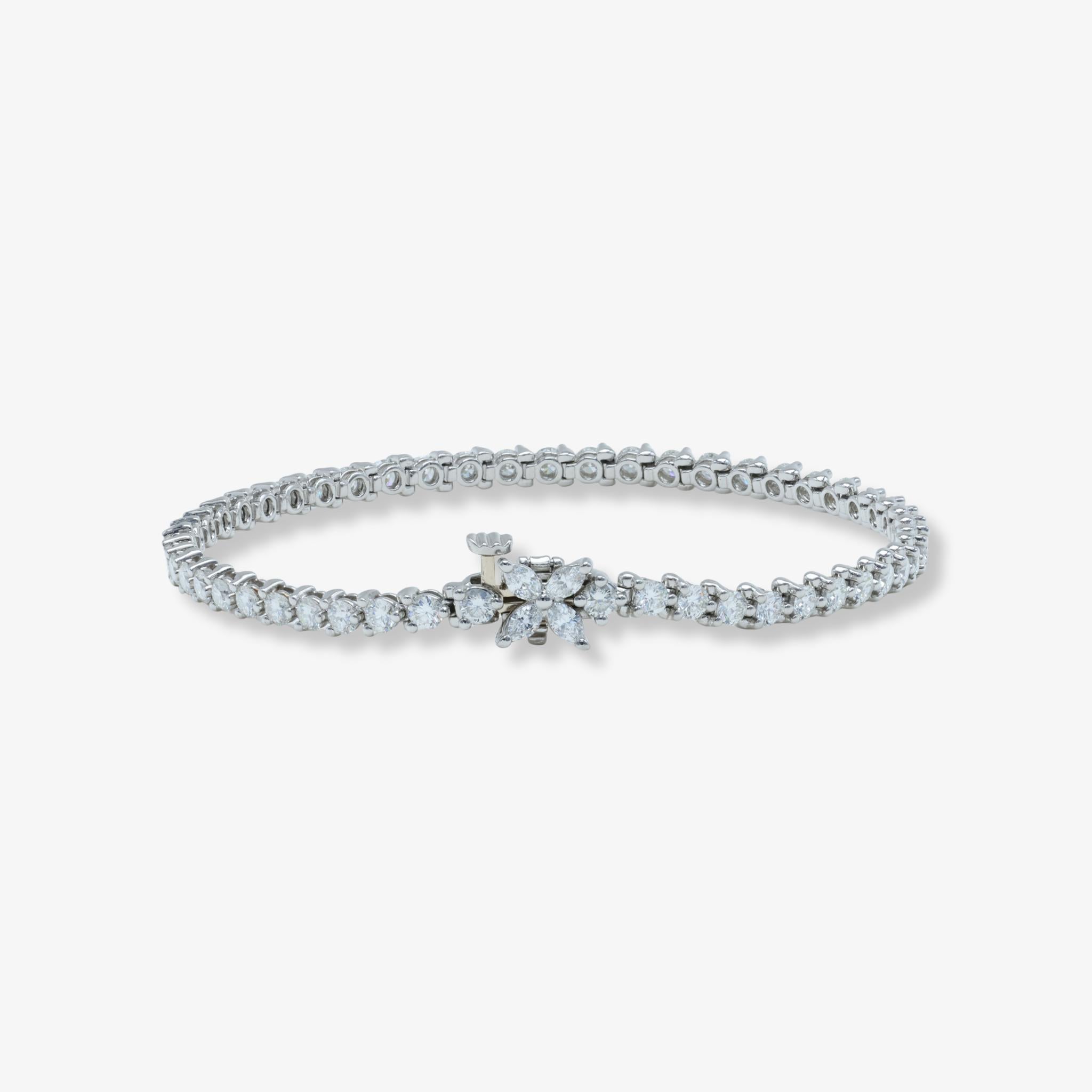 Iconic Tiffany & Co. Victoria Collection bracelet featuring 3.08 carats of round brilliant and marquise shaped diamonds in platinum. Size medium, 7 inches.